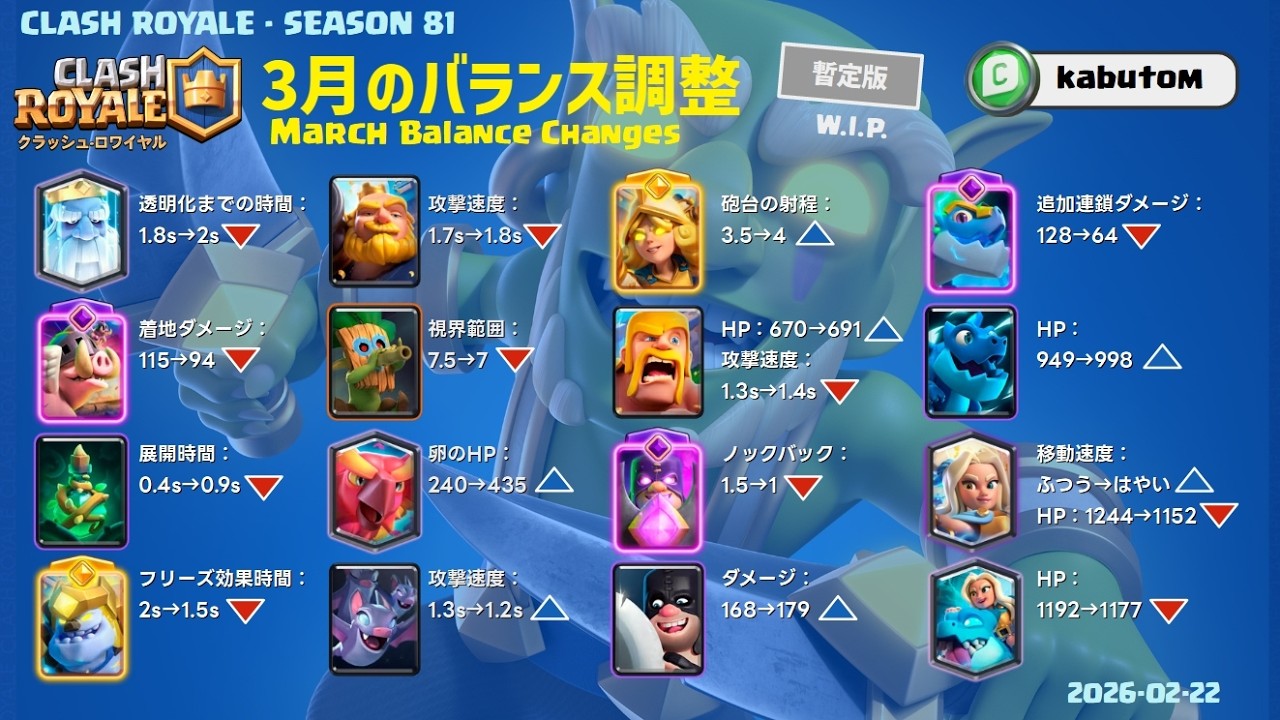 『クラッシュ・ロワイヤル』(クラロワ)で、2月23日のアップデートで行なわれる緊急バランス調整と、3月バランス調整【暫定版】の内容情報解禁されました!