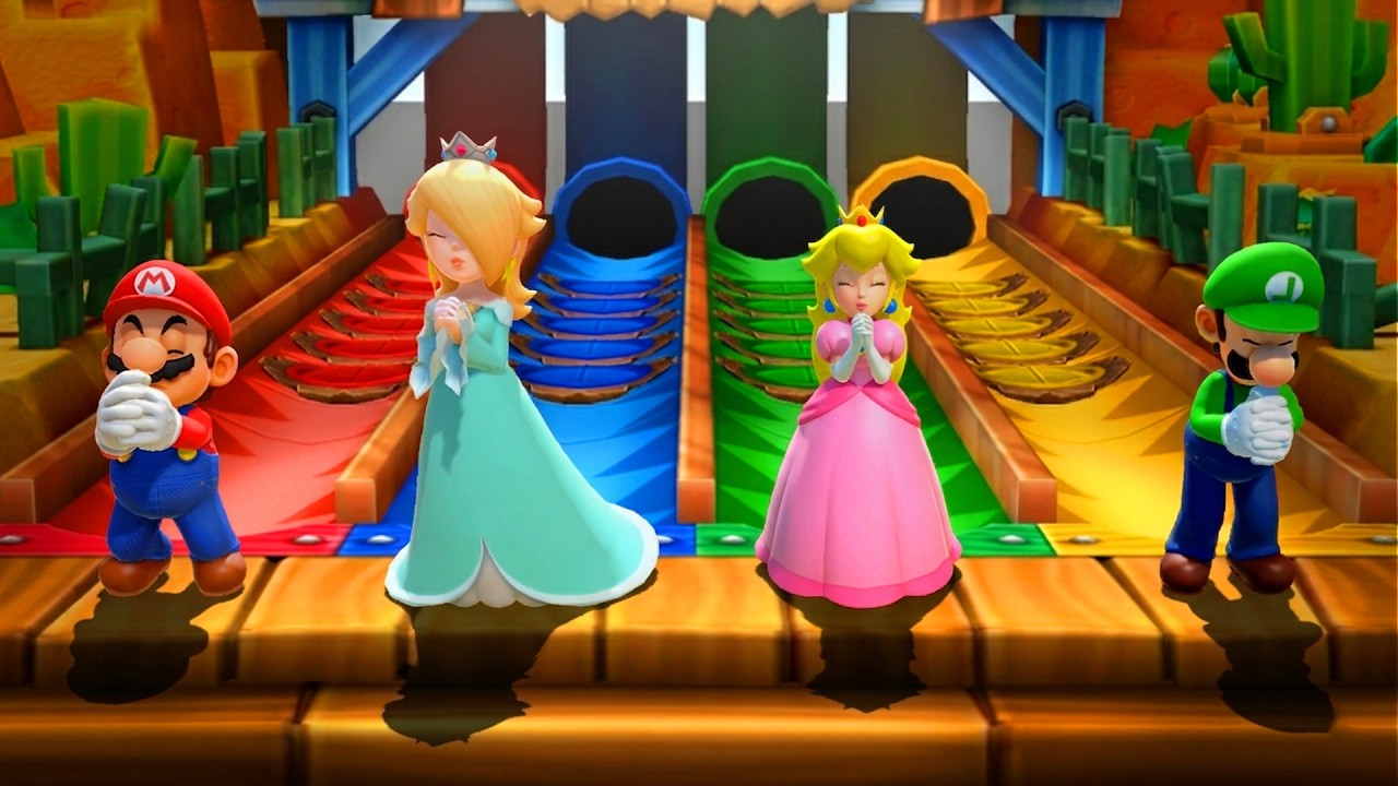 ついに開幕!マリオ、ロゼッタ、ピーチ、そしてルイージによる、プライドをかけたガチバトル!今回は「ミニゲームモード」で、4人が手加減なしの殴り合い(!?)を繰り広げます。