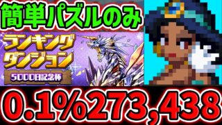 パズルゲーム 【これが一番強いです】0.1%27.3万点↑ずらし&固定パズルで王冠確定! ランキングダンジョン 5000日記念杯 【パズドラ】