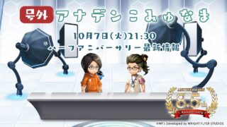 コンピュータRPG 8.5周年記念!号外こみゅなま 【ハーフアニバーサリー記念出逢い&キャンペーンほか】ゲスト:平澤信之介(プロデューサー) ◆番組概要今回のこみゅなまはハーフアニバーサリー特集!8.5周年を記念した特別な出逢いやキャンペーンの情報をお届けします!※収録映像をプレミア公開する形式での放送となります◆放送日時2025年10月7日(火)21:30~出演者◆MC・Bac... 2025.10.07 コンピュータRPG