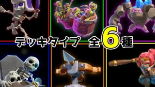 今回はクラロワのデッキを6つのタイプに分類し、それぞれの特徴について解説しました。「強いって言われてたのに全然勝てない」「自分が使うと全然削れない」それ、実はタイプを知らずに使っているからかもしれません。初心者のオリジナルデッキを除き、どの...